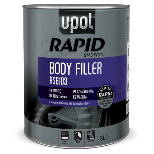 Шпатлевка RAPID - это универсальная шпатлевка с инновационной ультра-быстрой технологией высыхания. Позволяет уменьшить временной цикл ремонта и увеличить пропускную способность кузовной мастерской.• Высыхает в течение 10 минут.• Подходит для среднего ремонта.• Отличная адгезия к различным поверхностям.