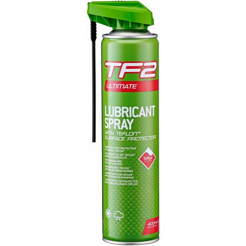 Weldtite TF2 Teflon Lube 400ml Spray - это удобная универсальная смазка для вашего велосипеда. Легко наносится с помощью распылителя, чтобы достичь всех областей, Смазка является № 1 в мире для защиты поверхности. Отталкивает грязь и очищает поверхности, оставляя защитную пленку. Покрытие Teflon® для защиты поверхности с высокой смазывающей способностьюОтталкивает грязь и очищает поверхности, оставляя защитную пленкуРазмер 400млВысокое проникновение в опорные поверхности цепиТакже подходит для мотоциклов, автомобилей, лодок и т. Д.