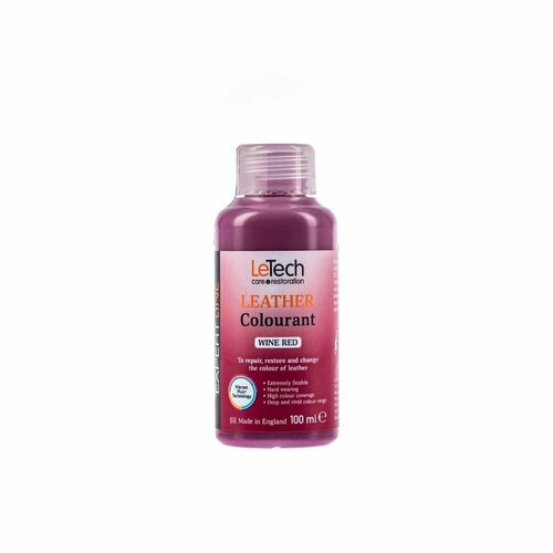 Краска для кожи, для кожи автомобиля, для обуви, для одежды, красное вино, LeTech (Leather Colourant) Wine Red 100 ml