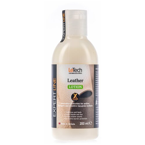 Защитный лосьон для кожи (Leather Lotion X-GUARD PROTECTED) – инновационное средство для питания и защиты кожаных изделий, специально разработанный для ухода за деликатными видами кож, анилинового и полуанилинового типа из которых производят кожаные куртки, перчатки, обувь, сумки и др. Защитный лосьон для кожи (Leather Lotion X-GUARD PROTECTED) - питает изделие из кожи и надежно защищает от негативных явлений окружающей среды, сохраняет их цвет и свойства кожи на протяжении всего срока эксплуатации. Лосьон создан специально для деликатных видов кож с использованием современной фторполимерной технологии X-GUARD и добавлением натуральных компонентов, инновационная рецептура состава обеспечивает выраженную грязеотталкивающую и гидрофобную защиту, а также обеспечивает необходимое питание кожи, улучшая ее тактильное восприятие. При нанесении лосьона, на поверхности кожи образуется равномерное защитное покрытие, которое предотвращает впитывание в кожу воды, масел, жиров и других видов загрязнений.