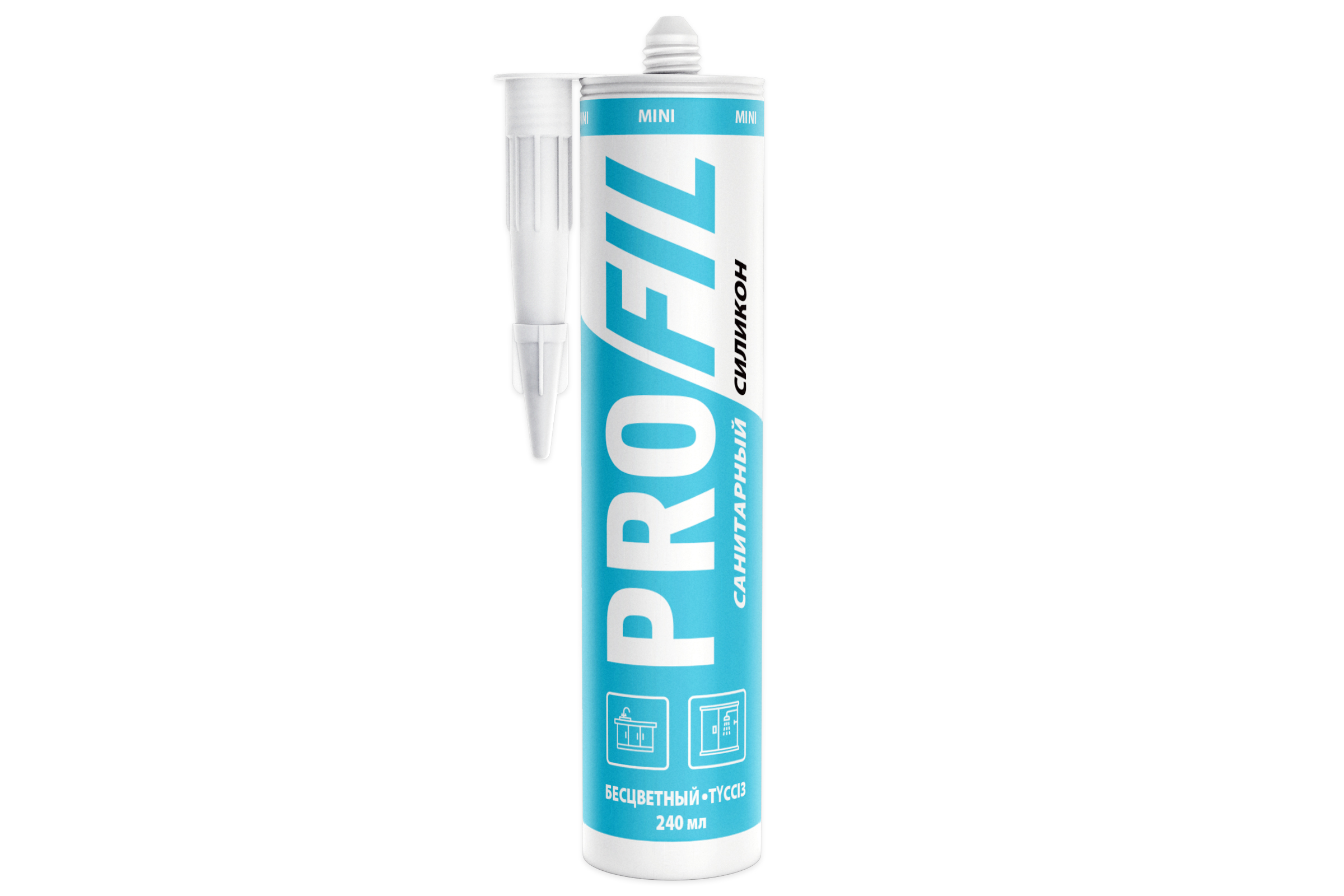 Санитарный силикон Profil Mini – качественный эластичный однокомпонентный герметик на основе силикона.Применяется для герметизации строительных и конструкционных швов, в соединениях в ванных комнатах и на кухнях, в соединениях холодильных помещений. Прекрасно подходит для заделки щелей между стеной и раковиной.Может использоваться для герметизации в системах кондиционирования воздуха.Санитарный герметик Profil Mini прост в нанесении, обладает хорошей адгезией к множеству строительных материалов (за исключением ПВХ, акрила, ПП, ПЭ и тефлона). После отверждения сохраняет эластичность. Стоек к ультрафиолетовому излучению, имеет стабильный цвет. Содержит фунгициды.Технические характеристикиОснова — полисилоксанКонсистенция — стабильная пастаМеханизм отверждения — влажностная полимеризацияОбразование поверхностной пленки — 20 минпри температуре +20°C и относительной влажности 65%Скорость отверждения — 2мм/суткипри температуре +20°C и относительной влажности 65%Твердость — 15±5Шор АПлотность — 0,95г/млТемпературный диапазон эксплуатации — от -60 до +120°CМаксимально допустимая деформация — 25%Модуль эластичности — 0,23Н/мм?DIN 53504Предел прочности — 1,45Н/мм?DIN 53504Относительное удлинение при разрыве — 800%Температурный диапазон применения — от +5 до +35°CСредний расход — 25мл/п.м.при ширине шва 5 мм и толщине слоя 5 ммСпособ примененияСанитарный силиконовый герметик Profil Mini наносится на герметизируемую поверхность при помощи ручного или пневматического выдавливающего пистолета.Свежий силикон может быть удален с помощью уайт-спирита непосредственно после нанесения.