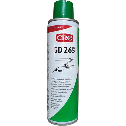 CRC GD 265 – климатологическая защита электрического оборудования от неблагоприятных погодных условий. CRC GD 265 – это вязкий силикон с консистенцией жирного вазелина.Свойства:Полупрозрачная бесцветная самовыравнивающаяся плёнка;Устойчивость к воздействию температуры от минус 50 °С до +200 °С;Вытесняет влагу (гидрофобно);Химически инертна для основных видов обрабатываемых поверхностей;GD 265 обеспечивает очень однородную пленку постоянной толщины и вязкости;Очень хорошая тиксотропия (способность некоторых дисперсных систем обратимо разжижаться при достаточно интенсивных механических воздействиях (перемешивании, встряхивании) и отвердевать (терять текучесть) при пребывании в покое) на вертикальных поверхностях;Двойной клапан обеспечивает распыление аэрозольного баллона в перевёрнутом состоянии.Применение:CRC GD 265 применяется для защиты изоляторов от пробоев и деформаций, вызванных наличием в воздухе пыли, а также от воздействия изморози и тумана;При нанесении защиты из аэрозольного баллона обеспечивается покрытие тонким и ровным слоем CRC GD 265 с существенной экономией времени по сравнению с другими методами;CRC GD 265 также решает все проблемы герметизации в сложных условиях применения;CRC GD 265 подходит в качестве покрытия для пресс-форм и экструзионных головок при производстве пластиковой проволоки;Смазка пар алюминий-сталь и алюминий-алюминий.