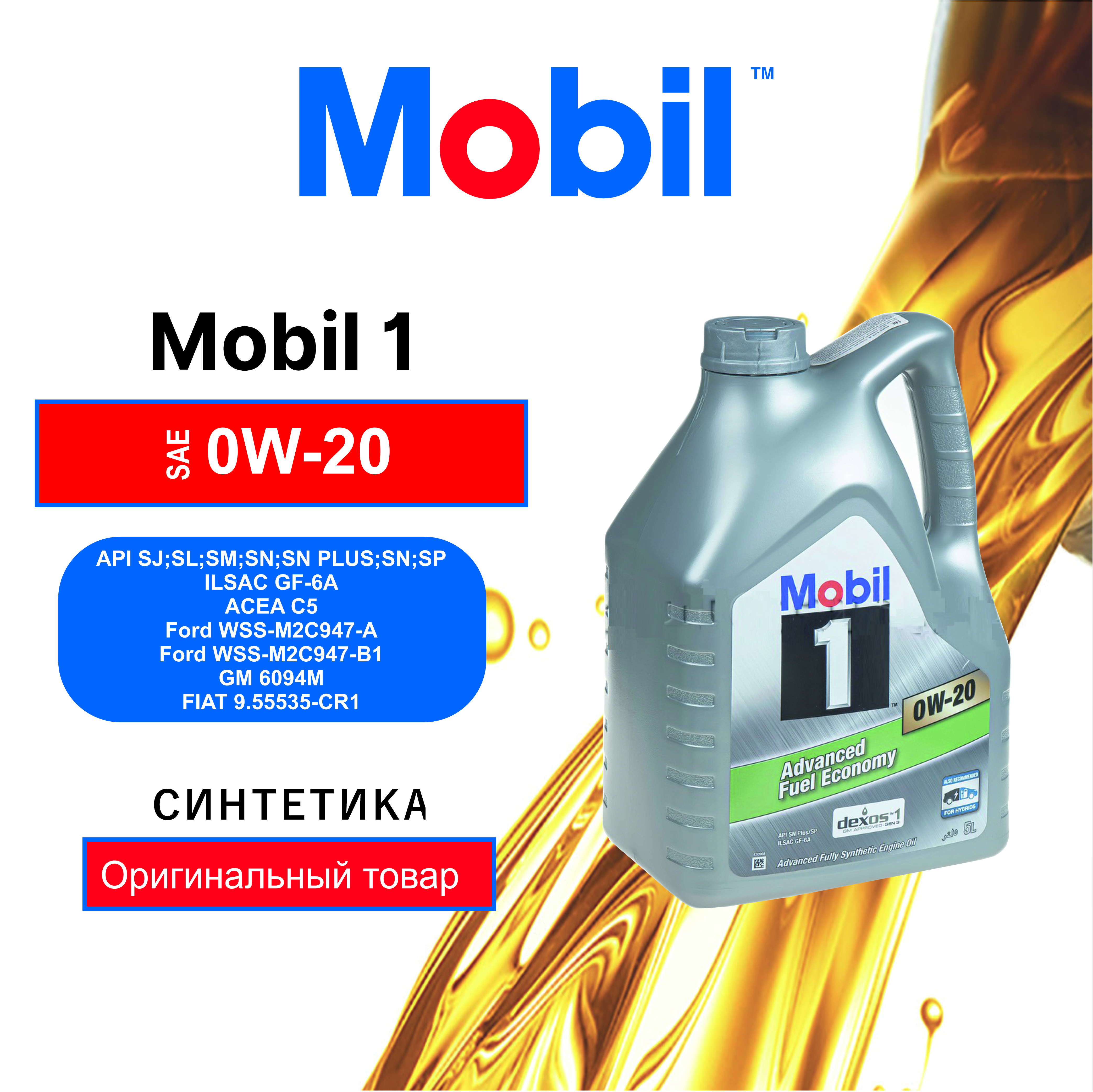 Моторное масло Mobil 1 0W20 5л