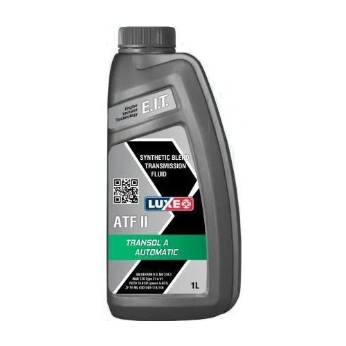 LUXE TRANSSOL A ATF II – минеральное трансмиссионное масло для автоматических коробок передач с добавлением специального комплекса присадок. Предназначена для применения в АКПП легковой, коммерческой, специальной и внедорожной техники.Свойства:• Высокая термическая стабильность• Надежная защита от износа, шлама и коррозии• Комплексная защита от износа, коррозии и пенообразования• Нейтральное поведение по отношению к уплотнительным материалам• Высокая устойчивость к окислениюСтандарты качества:GM DEXRON II DMAN 339 Type Z1 и V1ALLISON C-4ZF TE-ML 03D/04D/09/11A/14A и 17CFORD MERCONVOITH 55.6335 (ранее G-607)