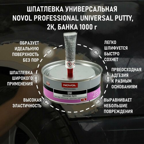 Шпатлевка автомобильная полиэфирная 2 кг NOVOL UNI Universal Putty, бежевая + отвердитель