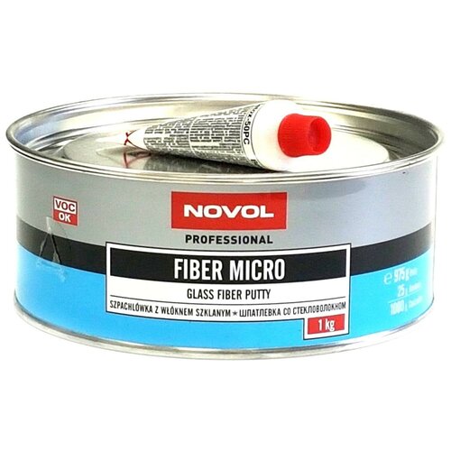 NOVOL FIBER MICRO – шпатлёвка со стеклянным волокномFIBER MICRO - шпатлёвка, укреплённая стеклянным волокном. Благодаря применению полиэфирных эластичных смол и коротких стеклянных волокон, шпатлёвка FIBER MICRO обладает значительно большей эластичностью чем шпатлёвка FIBER, имея при этом высокую механическую прочность. При лёгкой и мягкой обработке может применяться даже на больших поверхностях. Обладает хорошей адгезией к разным видам оснований, в том числе к оцинкованной стали. Может использоваться на следующих видах поверхностей:- полиэфирные ламинаты,- сталь,- оцинкованная сталь,- алюминий,- двухкомпонентные акриловые грунты,- старые лаковые покрытия.