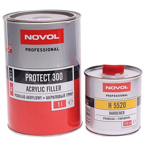 Грунт Novol "PROTECT 300", MS, 2К акриловый, банка 1л. с отвердителем 0,25л черный