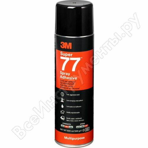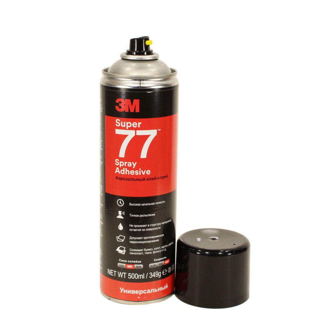 Клей-спрей 3М 77, аэрозольный эластомерный универсальный, прозрачный 500 мл