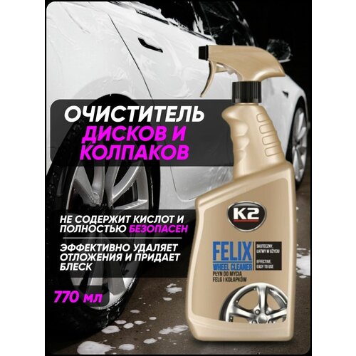 K2 FELIX - очиститель дисков авто. Эффективная жидкость для мойки всех типов дисков и колпаков вашей машины. Очиститель автомобильный лучше всего работает при регулярной очистке. Его формула тщательно очищает диски от отложений, образовавшихся при попадании пыли на тормозные колодки и дорожной грязи. Химия для дисков авто проникает во все щели и полости автомобильных дисков, растворяя в них отложения и придавая яркий блеск. После использования средства поверхность диска очищается, обновляется и защищается. Очиститель дисков колесных не содержит кислот и полностью безопасен для алюминиевых, полированных, хромированных, окрашенных и стальных дисков. Автохимия для мойки безвредна для шин и колпаков. Для достижения наилучшего результата рекомендуем использовать вместе с щеткой для мытья дисков, щетка для колес. FELIX - это очиститель для автомобильных дисков, который эффективно удаляет грязь и другие загрязнения. Этот продукт отлично подходит для использования на различных типах дисков, включая литые диски. Кроме того, он может использоваться как для чистки колесных дисков, так и для очистки пластиковых поверхностей автомобиля. Набор автохимии у каждого автовладельца должен содержать все необходимые инструменты, включая щетку для дисков, чтобы обеспечить максимальную эффективность очистки. Этот продукт отлично подходит для тех, кто ищет качественную автохимию для своего автомобиля. Инструкция по применению: 1. Хорошо встряхнуть перед использованием. 2. Тщательно опрыскайте ободок средством. 3. Оставьте примерно на 1 минуту. 4. Смойте водой. В случае сильных загрязнений можно использовать вместе с губкой или щеткой.