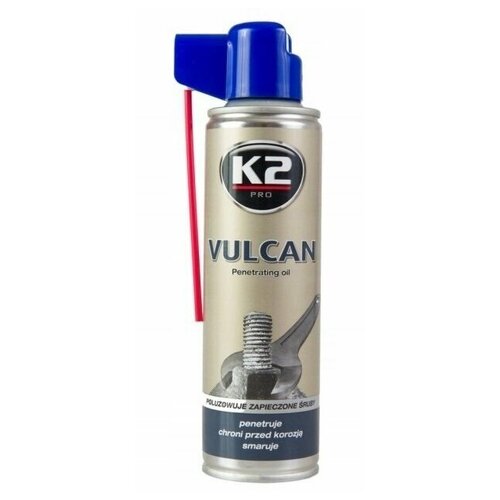 Благодаря K2 Vulcan вы сможете открутить даже самый заклинившие болты и гайки, сэкономив время и энергию.K2 Vulcan - это высокоэффективая проникающая смазка, облегчающая ослабление и отвинчивание старых, заклинивших и заржавевших резьбовых соединений. Благодаря своей инновационной формуле, смазка быстро и легко проникает в резьбу и растворяет в ней ржавчину, ослабляя соединение.После нанесения на напыляемой поверхности появляется тонкий защитный слой, обеспечивающий длительную защиту от повторной коррозии и отличное смазывание.Благодаря своей инновационной формуле K2 Vulcan подходит для использования в элементах, подверженных воздействию высоких и низких температур.K2 Vulcan оснащен удобным аппликатором с трубочкой, что позволяет точно распылить даже на самые труднодоступные элементы, либо нанести средство широкой струей на большую поверхность.Продукт не содержит силикона, безопасен для лямбда-зондов и других электрических датчиков.Метод использования:Хорошо встряхнуть перед использованием.В случае сильно корродированных болтов очистите соединение, ударив молотком, затем очистите компонент металлической щеткой.Распылите на застрявшие элементы и подождите несколько минут, чтобы K2 VULCAN полностью проник в корродированные элементы.Откручиваем элемент.В крайнем случае повторите действия и подождите несколько часов перед разборкой.
