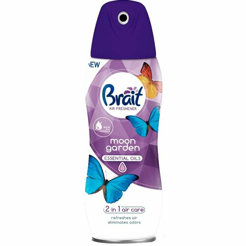 Освежитель воздуха Brait MOON GARDEN (300 мл), сухой, освежает и устраняет запахи, аромат Цветочный.Загадочный и чарующий аромат цветов. Аромат прогулки в саду в лунном свете, идеально подходит для романтичных вечеров.Эффективно нейтрализует и поглощает неприятный запах.Наполняет помещение неповторимым ароматом.Придает ощущение свежести и чистоты.Освежитель без эффекта мокрой дымки.Эргономичный вид банки гарантирует удобное и беспроблемное дозирование продукта, также благодаря точной насадке. Освежитель без добавления воды, что обеспечивает сухое распыление, без мокрых пятен.Бренд Brait существует на рынке уже 20 лет, предлагая широкий ассортимент освежителей воздуха и товаров бытовой химии. За это время он завоевал доверие клиентов, которые ценят, прежде всего, высокое качество и эффективность продукции, благодаря использованию инновационных формул.