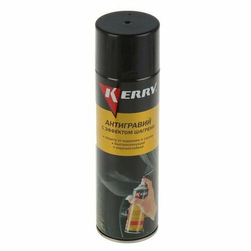 Антигравий Kerry защита от коррозии и сколов с эффектом шагрени, чёрный, 650 мл, аэрозоль (комплект из 2 шт)Профессиональное средство Антигравий KERRY с эффектом шагрени KR-971 для восстановления текстурных покрытий на новых и ремонтируемых деталях автомобилей (колесные арки, пороги, крылья и т. п.) и создания долговременной защиты от летящих камней и песка, создающих интенсивную абразивную нагрузку. Способно предотвращать повреждения элементов нижней части кузовов легковых автомобилей и прочих транспортных средств. Обладает хорошей адгезией и звукоизоляционными свойствами, устойчиво к перепадам температур, сохраняет эластичность в холодное время года, не растрескивается и не отслаивается на морозе. Быстро сохнет, после высыхания может быть окрашено большинством эмалей.Применение:- Во избежание попадания следов аэрозоля рекомендуется защищать поверхности, не подлежащие обработке.- Для достижения наилучших результатов состав следует наносить при температуре окружающей среды не ниже +10С.- Перед использованием баллон энергично встряхивать в течение 2-3-х минут.- Наносить с расстояния 25-30 см на сухую, очищенную от грязи, ржавчины и смазки поверхность в 2-3 слоя с промежуточной сушкой 10-15 минут при температуре +20С. Время полного высыхания - 2 часа при температуре +20С, после чего покрытие может быть окрашено.-Вес: 491 г.-Фасовка: 1 шт-Тип индивидуальной упаковки: Без упаковки-Длина упаковки: 6.5-Высота упаковки: 23.7-Ширина упаковки: 6.5-Объем упаковки: 1.001-Объем продукта: 1.1275-Объем бокса: 13.53-Материал: См. на упаковке-Цвет: Чёрный-Объём, л: 0.65-Вес, г/Объём, мл: 650-Объём, мл: 650-Объём: 500 мл - 1 л-Тип ёмкости: Аэрозоль-Способ нанесения: Аэрозоль