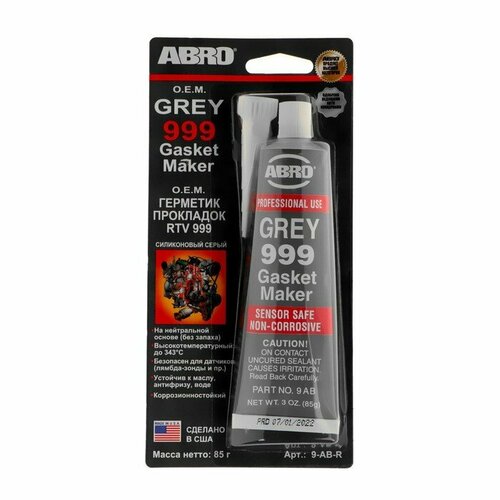 Герметик прокладок силиконовый ABRO OEM серый 999, 85 г 9-AB (комплект из 2 шт)Силиконовый герметик прокладок ABRO специально разработан для ремонта прокладок в двигателях японских и корейских автомобилей, но также может быть использован в двигателях производства США и Европы. Идеально подходит для замены прокладок в крышке картера коробок передач, корпусов термостата, впускных коллекторов, поддонов картера, водяных помп. Не разрушается под воздействием автомобильных жидкостей (за исключением бензина). Работает до 343°С-Вес: 121 г.-Фасовка: 1 шт-Тип индивидуальной упаковки: Блистер-Длина упаковки: 4-Высота упаковки: 13-Ширина упаковки: 3-Объем упаковки: 0.156-Объем продукта: 0.4778-Объем бокса: 5.733-Ширина: 3-Высота: 13-Габариты товара: 4 см × 3 см × 13 см-Материал: См. на упаковке-Вес, г/Объём, мл: 85-Тип ёмкости: Тюбик-Тип: Герметик прокладок-Темпер. ограничение НЕ ниже ℃: -5