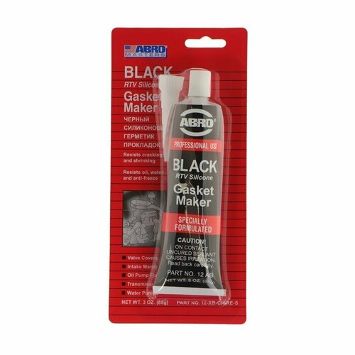 Герметик прокладок ABRO MASTERS черный, силиконовый, 85 г, 12-AB-CH-RE-S (комплект из 4 шт)Герметик прокладок предназначен для ремонта или замены прокладок автомобиля. Герметик принимает любую форму, легко выдерживает растяжение, сжатие или сдвиг. Кроме того, не разрушается от воды, антифриза или масел. Стоит отметить его высокую стойкость к тормозной жидкости и бензину. Разработан для температур до 260 °С.-Вес: 85 г.-Фасовка: 1 шт-Тип индивидуальной упаковки: Блистер-Длина упаковки: 2-Высота упаковки: 21-Ширина упаковки: 9.5-Объем упаковки: 0.399-Объем продукта: 0.4025-Объем бокса: 4.83-Ширина: 9.5-Высота: 21-Габариты товара: 2 см × 9,5 см × 21 см-Материал: См. на упаковке-Вес, г/Объём, мл: 85-Тип ёмкости: Тюбик-Тип: Герметик прокладок-Темпер. ограничение НЕ ниже ℃: -5-Запрет реализации по сегментам: 00000000208
