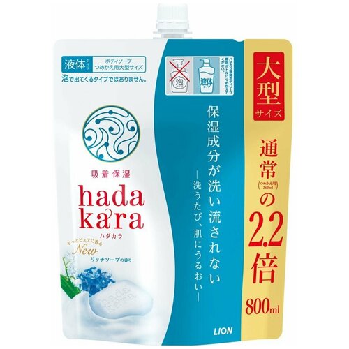 Lion hadakara увлажняющее жидкое мыло для тела с ароматом дорогого мыла, мягкая упаковка с крышкой, 800 мл