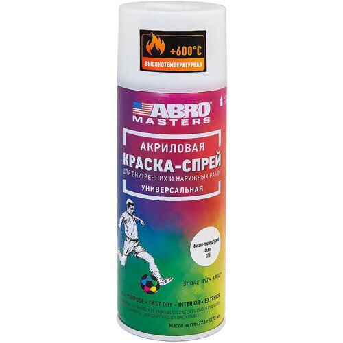 Краска белая MASTERS (аэрозоль, акриловая, высокотемпературная, 400 мл) ABRO
