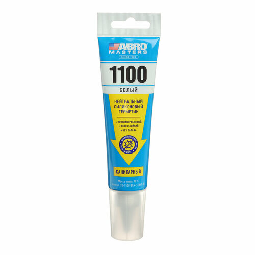 ABRO Герметик ABRO MASTERS 1100, силиконовый, санитарный, нейтральный, белый, 70 г