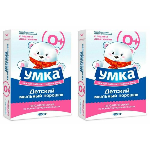 Стиральный детский порошок «Умка» разработан на основе натурального мыла, подходит для стирки детского белья с первых дней жизни. Предназначен для замачивания, ручной стирки и стирки в автоматических стиральных машинах детского белья из хлопчатобумажных, льняных, синтетических тканей и тканей из смешанных волокон. Особенности порошка: эффективно отстирывает даже самые сложные пятна и не разрушает структуру ткани; современный состав абсолютно безопасен для кожи ребёнка и не вызывает раздражения даже при попадании на слизистые оболочки; полностью выполаскивается из белья и не образует пыли, которая может раздражать дыхательные пути; низкие дозировки делают стирку экономичной и максимально сокращают взаимодействие с моющим средством; безопасен для всех видов стиральных машин, предотвращает образование накипи.