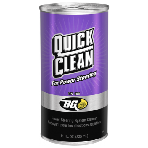 BG Quick Clean for Power SteeringПромывка системы гидроусилителя руля BG Quick Clean for Power Steering безопасно и эффективно удаляет лакообразования и отложения из системы гидроусилителя руля, а также из насосов, трубок, прокладок, с сальников и клапанов.Системы ГидроУсилителя Руля (ГУР) автомобиля постоянно работают под высоким давлением жидкости, а также в условиях высоких температур, что со временем приводит к потере смазывающих и других эксплуатационных свойств гидравлической жидкости. При регулярной работе ГУР постоянные нагрузки вызывают износ, вследствие чего появляется абразив, который становится причиной повреждений уплотнителей и клапанов. Зачастую еще до замены жидкости многие дорогостоящие компоненты системы выходят из строя! Промывка системы ГУР BG 108 безопасно и эффективно удалит накопленные загрязнения из системы гидроусилителя руля. Продукт совместим с компонентами системы и разработан для применения с любым оборудованием для обслуживания ГУР от компании BG.Регламент и нормы использования: Прогрейте автомобиль Откачайте из бачка ГУРа старую отработанную жидкость в объеме равном количеству добавляемой промывки Добавьте к старой отработанной жидкости банку (325 мл) ГУР BG 108 (не превышая уровня). При заведенном двигателе в течении 15 минут плавно поворачивайте рулевое колесо до крайних положений вправо и влево После этого произведите полную замену жидкости ГидроУсилителя Руля. BG Products не несет ответственности за чрезмерное или неправильное использование продукта. Внимательно читайте предупреждения и меры предосторожности при работе с продуктом на упаковке.