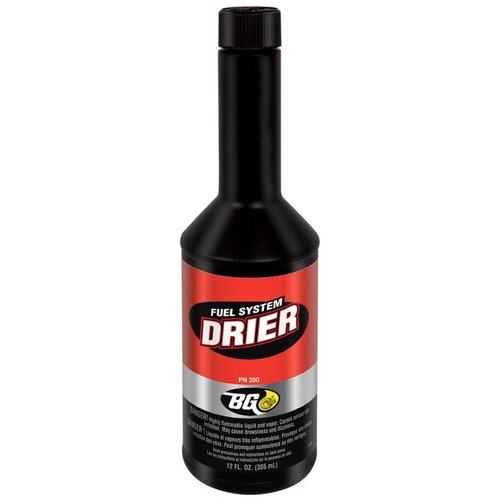 BG280 Осушитель влаги из топлива для бензиновых и дизельных ДВСОбъем : 355 млBG Fuel System DrierОсушитель содержит безопасный и эффективный химический состав, который поглощает влагу и в дальнейшем безопасно сгорает в двигателе.ОписаниеПерепад температур повышенная влажность окружающей среды, вызывает образование конденсата и накапливания воды на дне топливного бака или резервуара для хранения топлива. Топливо не смешивается с водой и со временем воды становится все больше и больше. Впоследствии эта вода может замерзнуть, что приведет к блокированию топливной системы. Так же вода вызывает коррозию компонентов.Осушитель топлива BG 280 содержит безопасные и эффективные химические компоненты, позволяющие связать молекулы воды с молекулами топлива и безопасно дать ей сгореть (испариться) в камере сгорания, не нанося вреда.Безопасен для катализатора и кислородного датчикаРекомендуется как для бензиновых, так и дизельных двигателейПреимущества:Предотвращает образование кристаллов льда в топливных системахОблегчает холодный запуск двигателяОсобенно эффективен при добавлении в топливо, содержащее этанолРегламент и нормы использования:Бензиновые двигатели. Добавлять продукт при заправке:1 бутылка (100 мл) рассчитана на 19–38 литров топлива1 бутылка (177 мл) — на 38-50 литров топлива1 бутылка (355 мл) — на 50 литров топливаМалообъемные бензиновые двигатели:Добавлять примерно 30 мл. продукта на 3,79 литра топлива.Дизельные двигатели:1 бутылка (355 мл) рассчитана на 110–340 литров дизельного топлива