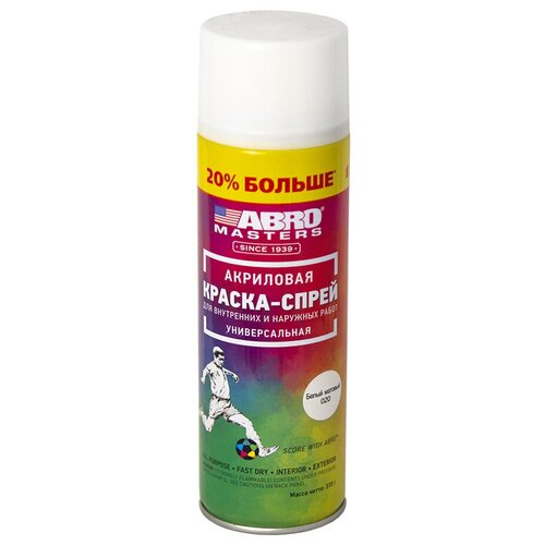 ABRO Краска-спрей Белая матовая стандарт +20% ABRO MASTERS (624мл) (ABRO)