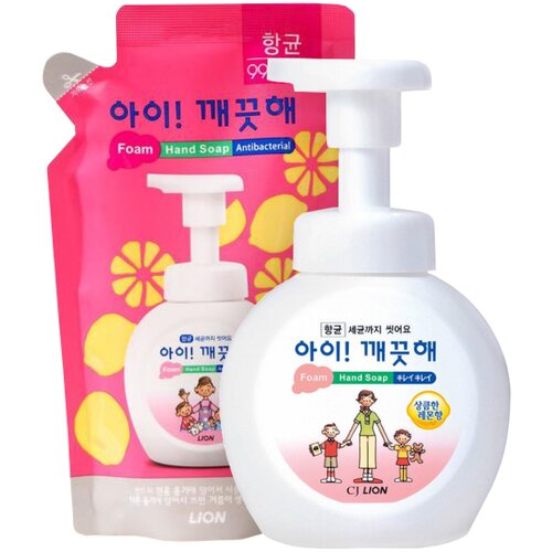 LION Набор жидкое мыло пенное "Ai - Kekute" с ароматом Лимона, флакон+запасной блок, 250+200 мл
