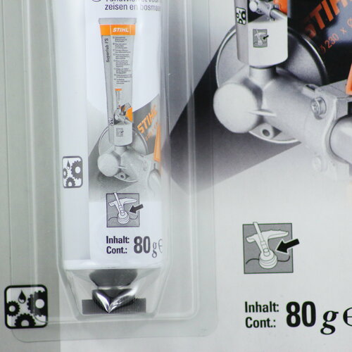 Трансмиссионная смазка STIHL для мотокос. Благодаря входящим в состав компонентам, снижает износ основных частей и повышает устойчивость к коррозии.Свойства:Высокая проникающая способность при одновременно высокой адгезии (даже в компактных передаточных механизмах смазка попадает на все нужные точки).Устойчива к высоким температурам и срезывающим силамУстойчива к окислениюОсновные области применения:Эффективная консистентная смазка для деталей трансмиссии подходит для всех трансмиссий с закрытым корпусом с коническими зубчатыми, цилиндрическими, червячными и прочими передачами.В отдельных случаях для редукторов кусторезов и триммеров.Соблюдайте рекомендации соответствующего производителя редукторов.Действие:уменьшает износзащищает от коррозииарт. 7811201117 Срок годности 2 года.