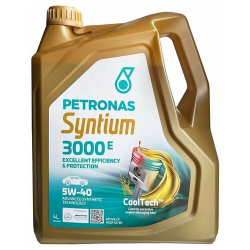 Полностью синтетическое моторное масло, отличается от аналогичных масел уникально высокими показателями по экономии топлива.Соответствуют самым современным требованиям всех ведущих производителей легковых автомобилей, микроавтобусов и лёгких грузовиков, оснащённых бензиновыми и дизельными двигателями, в том числе и с турбонаддувом.Формула состава моторного масла Petronas SYNTIUM 3000 E разрабатывалась с учетом требований бензиновых, дизельных ДВС высокой мощности легковых автомобилей Mercedes-Benz и BMW с современными системами нейтрализации выхлопных газов, где установлены фильтр твёрдых частиц и тройной катализатор.Также для двигателей с классической системой выхлопа и в моторах, которые эксплуатируются в наиболее тяжёлых условиях.Температура потери текучести -36 °C.