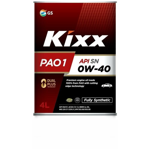 KIXX L208444TE1 Масло моторное Kixx PAO 1 0w-40 API SN, ACEA A3/B4/C3 4л L208444TE1