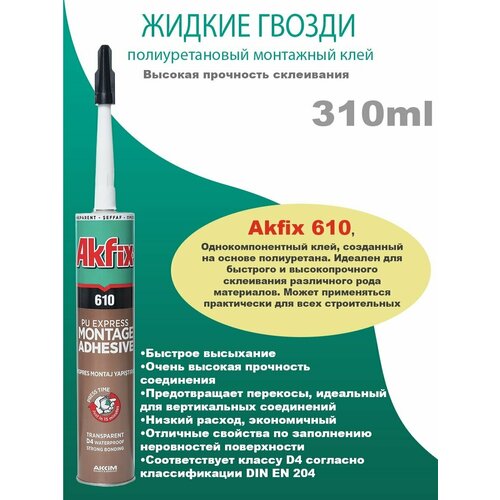 Клей полиуретановый экспресс Akfix 610, прозрачный, 310 мл (GA400) 1880939