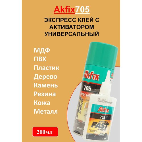 Akfix 705 экспресс клей секундный С активатором универсальный/двухкомпонентный 200мл.