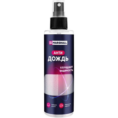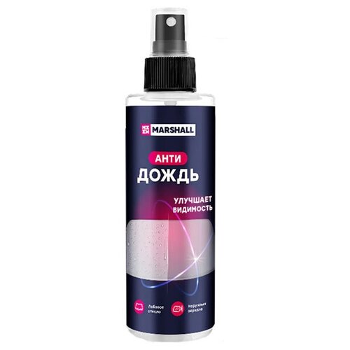 Бренд MARSHALL — эксперт в области производства автомобильных запчастей.Мы начали сотрудничество с ведущими производствами автохимии, с целью предоставить Вам лучший продукт для ухода за автомобилем.Вся продукция автомобильной химии производится на высокотехнологичном современном производстве, входящем в ассоциацию NLGI — "американский национальный институт пластичных смазок" и занимает лидирующее положение в отрасли.Антидождь MARSHALL предназначен для очищения лобового и периферийного остекления, боковых зеркал, фар автомобиля. Многокомпонентный полимерный состав, взаимодействуя с поверхностью автомобиля создает ультратонкую пленку, которая эффективно защищает остекление автомобиля от капель воды, мокрого снега и грязи. В зимний период и межсезонье антидождь MARSHALL борется с образованием наледи, существенно сокращая время прогревания автомобиля. Улучшенная формула продукта способствует снижению расхода омывающей жидкости, а также продлевает срок службы щеток стеклоочистителя за счет менее интенсивного использования. Антидождь MARSHALL призван обеспечить непревзойденную видимость, комфорт и безопасность вождения даже в самых экстремальных погодных условиях.Автомобильная косметика MARSHALL - синтез новейших технологий в мире автохимии и производства.перед использованием настоятельно советуем ознакомиться со способом применения И информацией на этикетке.