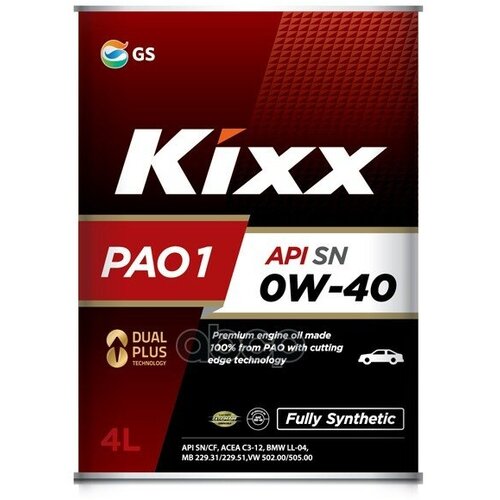 KIXX Kixx Pao1 0w40 C3, Sn/Cf Масло Моторное Синт. (Корея) (4l)