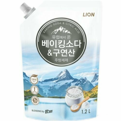 CJ Lion Chamgreen Средство для мытья посуды с содой и лимонной кислотой (рефил) 1200г