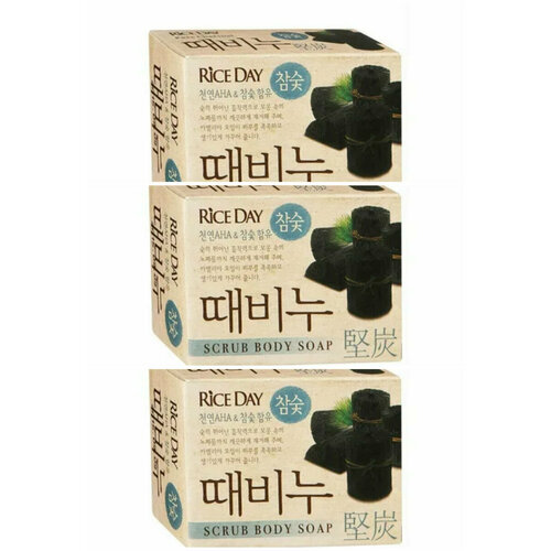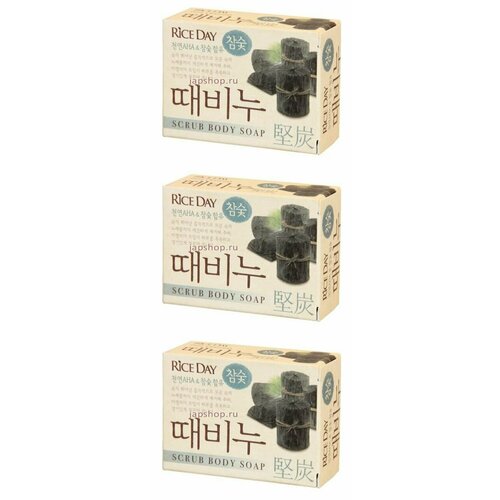 Скраб-мыло туалетное CJ Lion Rice Day Древесный уголь, 100 гр, 3 шт.
