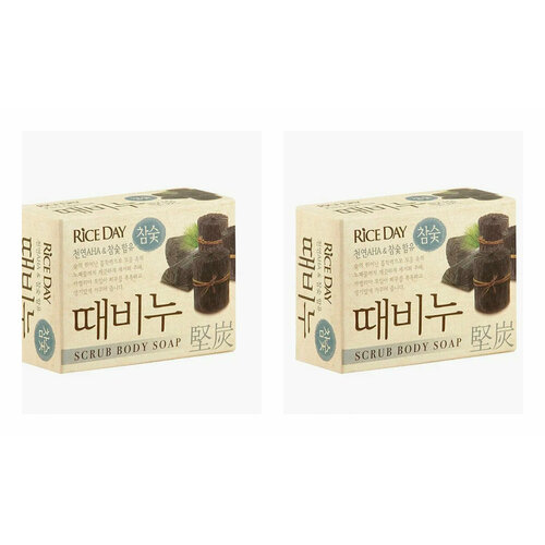 Скраб-мыло туалетное CJ Lion Rice Day Древесный уголь, 100 гр, 2 уп.