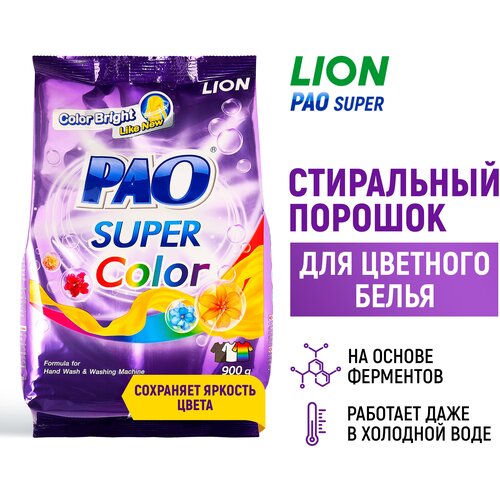 LION PAO Super Color Антибактериальный порошок для стирки цветного белья, 900 г