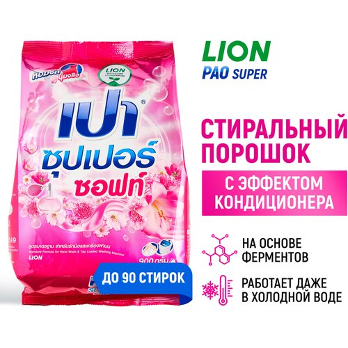 Антибактериальный стиральный порошок LION Pao Super Soft с эффектом кондиционера, 900 г