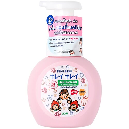Мыло-пенка для рук Kirei Kirei антибактериальная на основе растительных компонентов с нежным ароматом лесных ягод создает обильную пену, бережно очищая и оставляя ощущение гладкости кожи после использования.Обладает приятным свежим ароматом.Результат:• Защита от бактерий и чистота кожи;• Гладкость и мягкость кожи.Косметика бренда Lion не тестируется на животных.