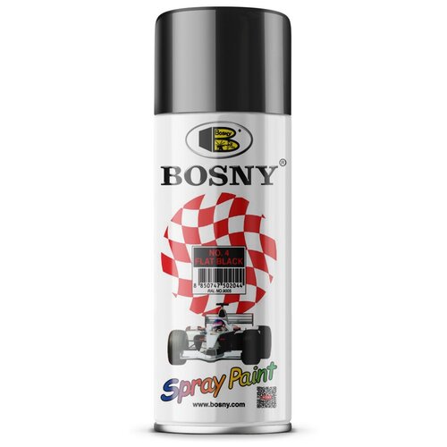 Аэрозольная краска в баллончике Bosny №4 акриловая универсальная, матовая, цвет черный, RAL 9005 (BOSNY NO. 4), 520 мл