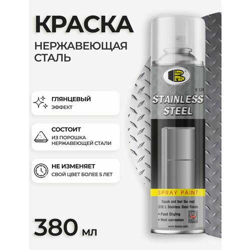 Аэрозольная краска Нержавеющая сталь, Bosny, 380 мл / Краска в баллончике (BOSNY NO. SS)