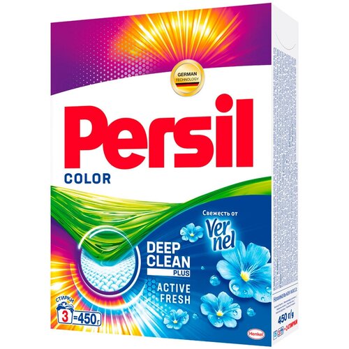 Стиральный порошок Персил содержит формулу Deep Clean Technology с уникальным сочетанием 13 активных компонентов, поэтому тщательно отстирывает цветные вещи и удаляет самые различные пятна. Средство дарит белью приятный аромат и длительную свежесть. Стиральный порошок Персил подходит для стирки изделий из хлопчатобумажных, льняных, синтетических тканей и тканей из смешанных волокон в стиральных машинах-автоматах и ручной стирки в воде любой жесткости.