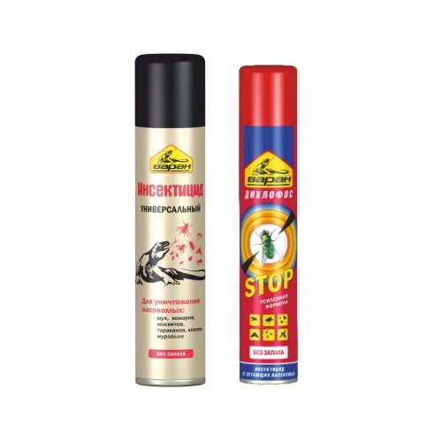 Набор инсектицидов широкого действия Варан - это защита от комаров, мошек, слепней и других насекомых. В комплекте 2 баллона инсектицидов.