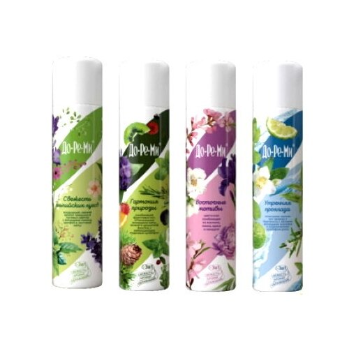 Набор освежителей воздуха До-Ре-Ми Аква плюс 4 шт - Свежесть альпийских лугов, Восточные мотивы, Гармония природы и Утренняя прохлада