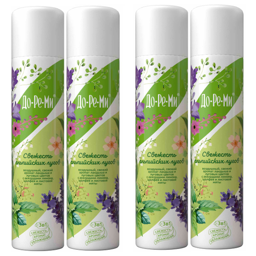 Аэрозольный освежитель воздуха "До-Ре-Ми Аква Плюс" - Свежесть альпийских лугов 3в1 (350 мл) х 4 штуки