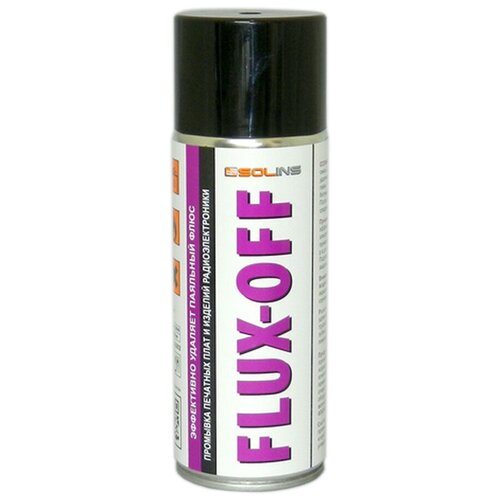 Эффективно удаляет канифольный флюс и другие паяльные отходы с печатных плат.FLUX-OFF – мягкий, но эффективный очиститель, который легко удаляет самые вязкие отложения флюса, масел и других загрязняющих веществ, таких как жир, пыль и остатки компаундов.FLUX-OFF бесцветен и не оставляет осадков.Не портит полезных материалов, но не рекомендуется использовать этот аэрозоль при работе с поливинилхлоридом и полистиролом.Применение: Используется для бережной, но интенсивной очистки печатных плат, микроэлектронных узлов и других электронных компонентов. Применяется для обезжиривания электронных приборов в целом и их частей.Технические данные:Цвет: бесцветныйПлотность: 0,84 г/см3Испарение: полноеСовместимость с материалами: хорошая