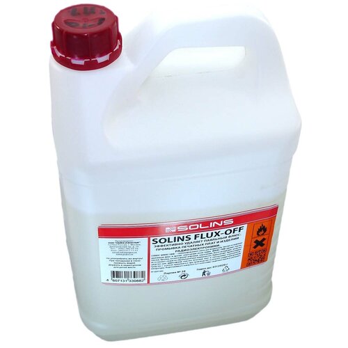 Солинс флюкс ОФФ – сбалансированная смесь растворителей, быстро и надежно удаляющая флюс и прочие загрязнения после пайки. Флюкс-офф удаляет масла, смазки, битумы, воски и другие нефтяные загрязнения. После испарения, средство не оставляет следов на обрабатываемых поверхностях. Применение: Превосходное средство для эффективной очистки печатных плат и электронных компонентов. Средство с успехом применяется при производстве и ремонте радиоэлектронной аппаратуры. Подготавливает поверхность к нанесению защитных лаков и улучшает их адгезию. Внимание! Средство весьма активно. Может воздействовать на некоторые пластмассы и окрашенные поверхности. В сомнительных случаях испытайте на небольшом участке. Рекомендации: Использование зубной щетки, жесткой кисти или ветоши помогает добиться наилучшего результата. Предупреждение: при использовании препарата рекомендуется обеспечить хорошую вентиляцию. Продукт является огнеопасным, поэтому следует исключить применение препарата вблизи источников открытого огня, раскаленных предметов и оборудования под напряжением. Перед включением оборудования убедитесь, что флюкс-офф полностью испарился. Состав: алифатические углеводороды, пропанол-2, метоксипропанол, бутилацетат, хлористый метилен, пропеллент (двуокись углерода). Технические данные:Цвет: бесцветныйПлотность: 0,745 г/см³Испарение: полноеСовместимость с материалами: хорошаяНоминальная ёмкость: 400 млШтрих код (EAN-13) 4607131331377Групповая упаковка: по 12 аэрозольных баллонов в гофрокоробе
