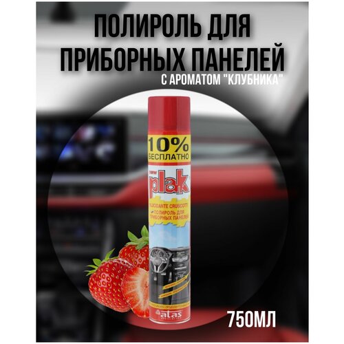 Полироль пластика "Plak" для приборной панели с ароматом "Клубника", 750 мл