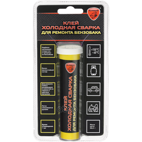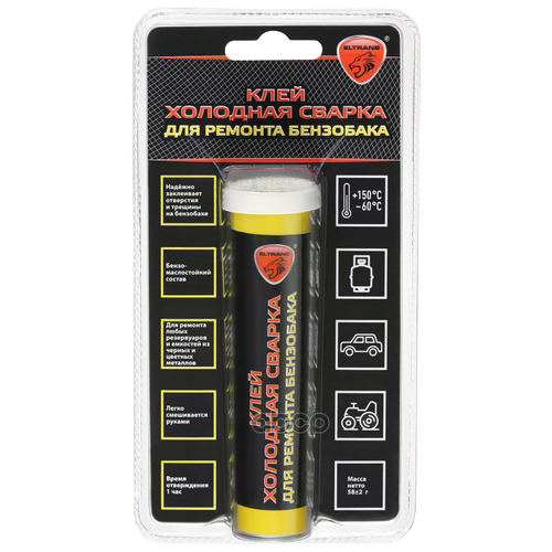 Холодная сварка для ремонта бензобака, туба 58 г ELTRANS EL120801. Эпоксидный клей - холодная сварка для металла предназначена для склеивания различных деталей и восстановления утраченных фрагментов. Сварка устойчива к воздействию воды, антифриза, масел и других технических жидкостей. Клей - холодная сварка для ремонта бензобака ELTRANS пластиковый патрон (труба) в блистере EL-1208.01 предназначен для заклеивания отверстий и затирки трещин в любых емкостях, не контактирующих с огнем и эксплуатирующихся при температурах от -30С до +90С. Двухкомпонентный состав подходит для поверхностей из пластика (кроме полиэтилена и полипропилена), черных и цветных металлов. Продукт используют для ремонта бензобаков легковой, грузовой, сельскохозяйственной и специальной техники. Клей обладает устойчивостью к воздействию воды, масла и бензина.