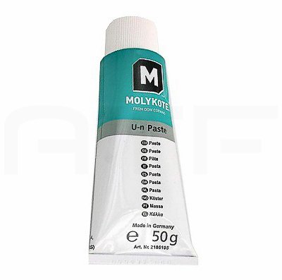 Сборочная паста Molykote U-N на основе твёрдых смазок и синтетического (ПАГ) масла предназначена для подшипников качения и скольжения, направляющих скольжения, цепных передач, зубчатых открытых передач, шлицевых и шпоночных соединений, а также для сопряжений с посадками с натягом.